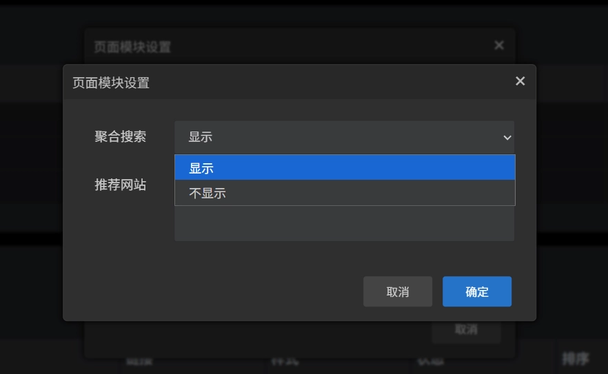 打开 页面设置,在页面中间位置找到聚合搜索模块