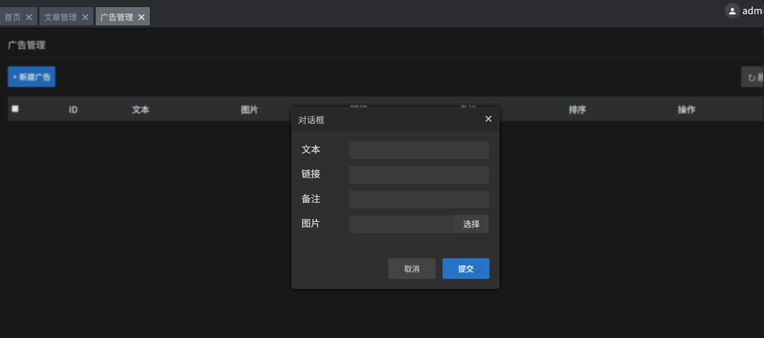 找到广告模块,输入广告id,以逗号分隔。修改排序值>0